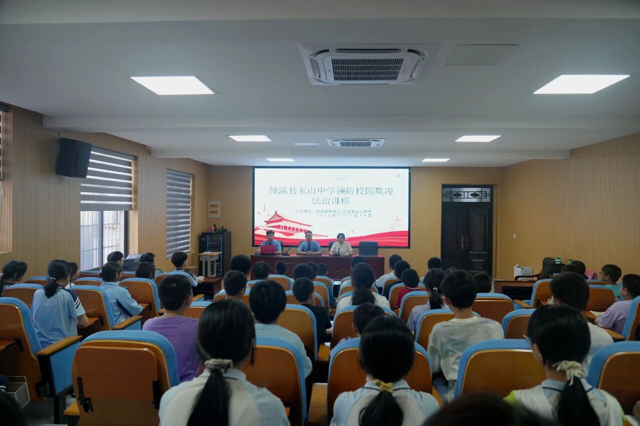 9月19日下午,在东山中学,“徽牛普法”志愿服务队干警为同学们带来了一堂法治讲座。检察官围绕近几年未成年人犯罪情况、校园欺凌的含义、表现形式、危害后果及法律责任等方面,通过生动鲜活的案例解析,以案释法警示潜在风险,同时呼吁全体学生敬畏法律、珍视情谊,既要杜绝成为欺凌的一员,也要勇敢捍卫自身和他人的合法权益。