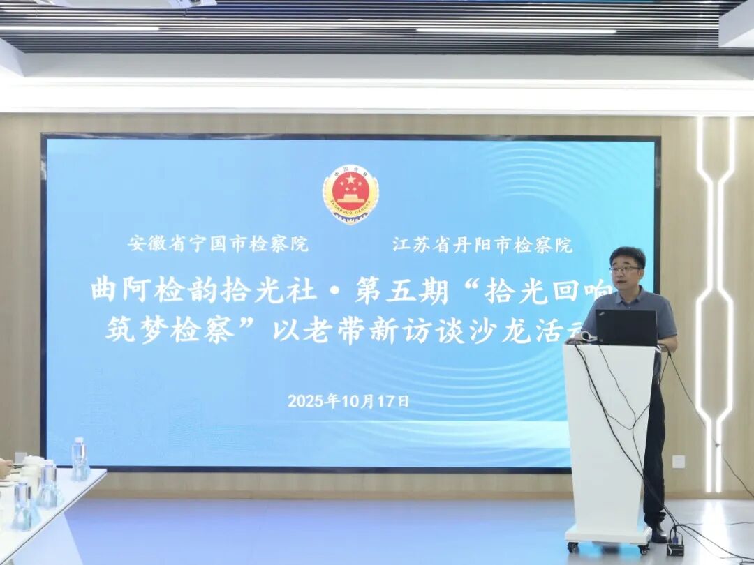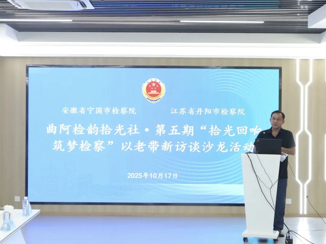 10月17日,宁国市人民检察院一行赴丹阳市人民检察院联合开展“拾光回响 筑梦检察”跨区域以老带新访谈沙龙活动。丹阳市检察院党组成员、副检察长王飞及部分院领导,宁国市检察院党组副书记、副检察长梁新宇,以及两地资深检察官、青年干警代表齐聚一堂,通过经验分享、案例研讨及自由交流等形式,围绕检察实务与职业情怀等展开深入对话。