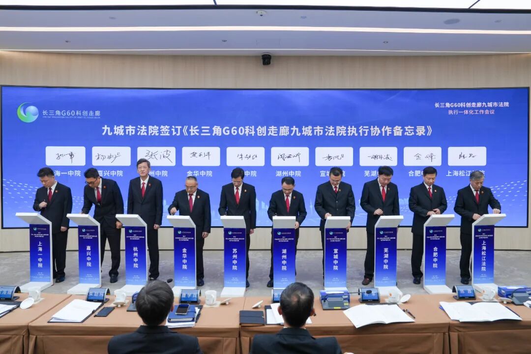 会上,九城市法院共同签署了《长三角G60科创走廊九城市法院执行协作备忘录》。九城市法院将在案件移送、事项协同、保障机制等方面开展深入合作,进一步有效整合区域执行资源,深化执行协同联动机制建设,破除单区域的孤岛式法院执行模式,切实解决执行难问题。