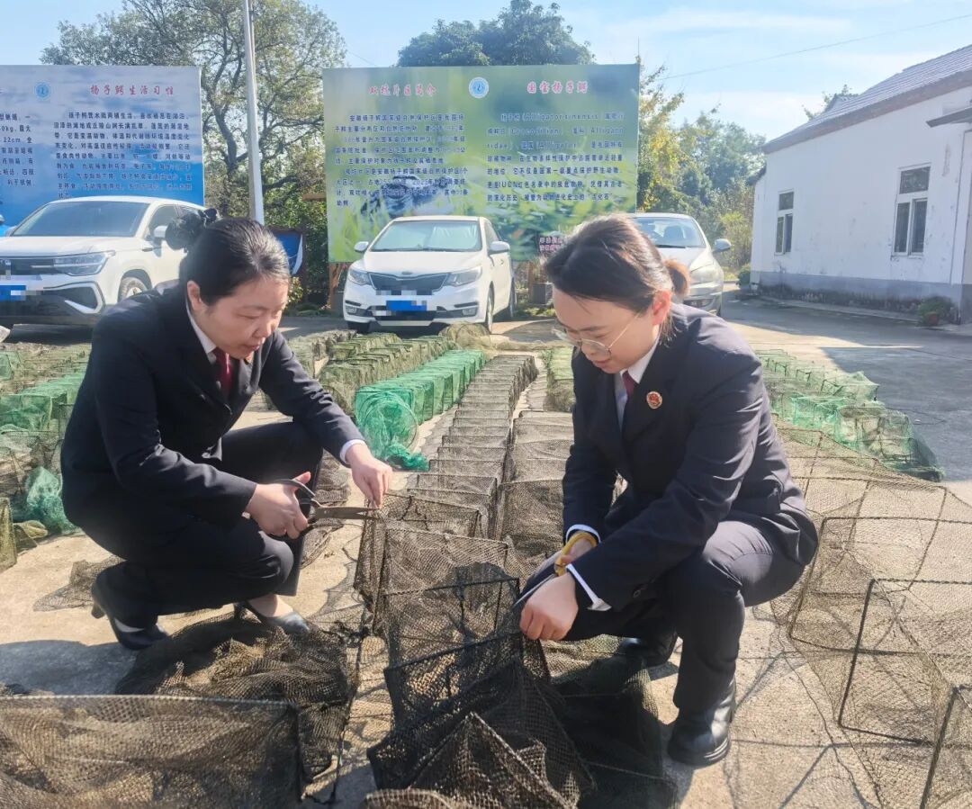 扬子鳄作为国家一级保护动物,其野外种群数量的增长离不开安全稳定的栖息环境。放置网眼细密的地笼网等非法渔具,易导致扬子鳄被困无法换气而溺水死亡。行动中,巡护人员沿着河道、塘口周边仔细搜寻,以检查保护区栖息地内的非法捕捞、放置地笼网等伤害扬子鳄行为为重点,清除威胁扬子鳄生存的违规捕捞设施,并将收缴的地笼网等非法渔具进行集中销毁。