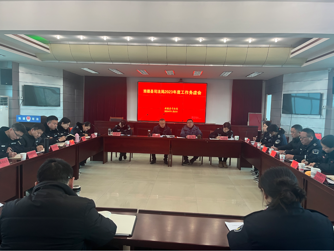 1月8日下午,旌德县司法局召开2024年度工作务虚会,全面总结过去一年的工作,谋划部署新一年的工作重点。局党组书记、局长主持会议,局领导班子、司法所所长及各股室负责人参加会议。