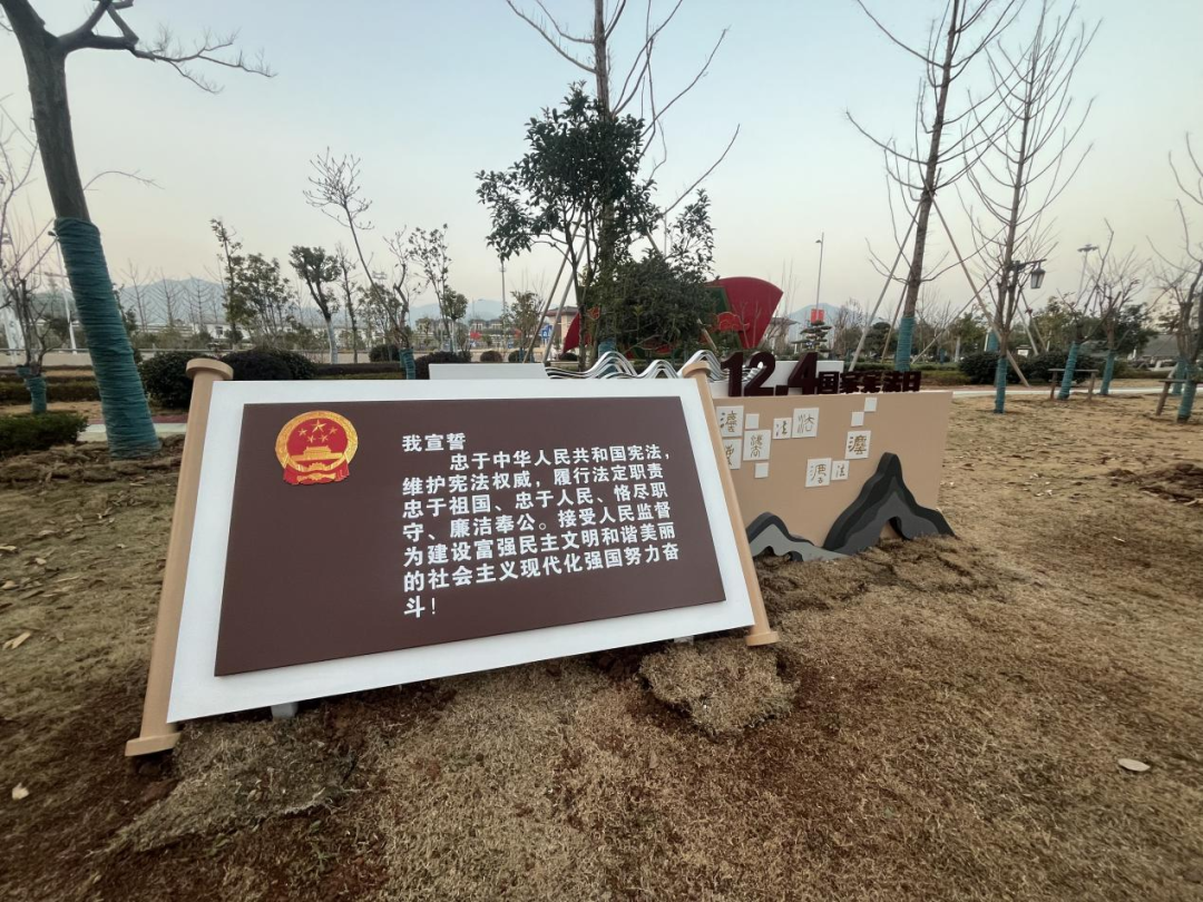 坚持以小阵地带动大普法,依托城市“口袋公园”因地制宜打造法治文化阵地,发挥法治文化润物细无声的潜移默化作用。2023年来,在扬之河畔新建百米生态环境保护法治长廊,水畔林间实现“景中有法、法中有景”;在灵山脚下新建食品安全主题公园,打造户外的“食品安全普法教科书”;在花根游园新建宪法主题公园,弘扬宪法精神,增强市民宪法意识和法治观念;在9个乡镇14个村打造法治微景观,形成“出门见法”的法治文化圈。同时,《中华人民共和国宪法》《中华人民共和国民法典》《习近平法治思想学习纲要》等书籍融入“十五分钟阅读圈”的城市阅读空间,使之市民读书“网红地”成为“学法地”,让法律知识随手可拿、随时可阅。