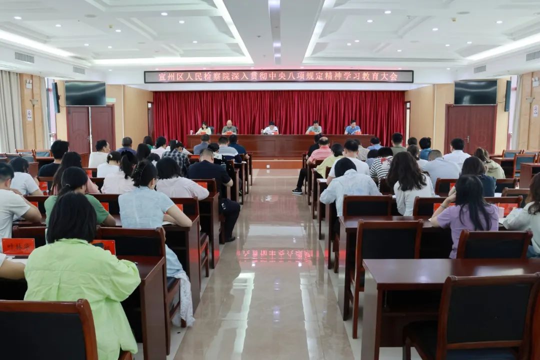 5月16日下午,宣州区人民检察院召开深入贯彻中央八项规定精神学习教育大会。会议由院党组书记、检察长汪星辉主持,院领导班子成员及全体干警参加会议。