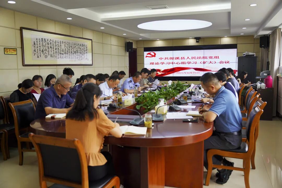 6月25日,郎溪县人民法院召开党组理论学习中心组学习(扩大)会议。院党组书记、院长刘燕主持会议,院领导班子成员、各支部书记、各部门负责人和部分干警代表参加会议。
