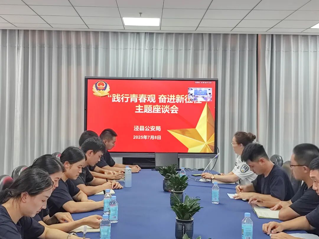 为深入学习贯彻习近平总书记关于青年工作的重要思想,激励全局广大青年民警辅警以坚定信念、过硬本领、强烈担当投身公安事业,7月8日,泾县公安局组织召开“践行青春观,奋进新征程”青年民警辅警座谈会。局领导、局青工委成员及近三年参加工作的青年民警辅警代表参会。本次会议通过视频连线的方式,于安徽公安学院设分会场,特邀安徽公安学院基础部主任、二级调研员王松丽教授出席,15名新入职培训的青年民警参会。