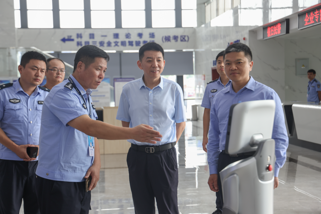 8月1日,含山县副县长、公安局局长李加好带队到广德市公安局开展考察交流,先后前往广德市车辆和驾驶人管理所、升平社区警务室、夫子庙警务站、交通安全主题公园、空中巡防指挥中心进行实地考察调研。广德市政府副市长、公安局局长王泽银陪同考察。
