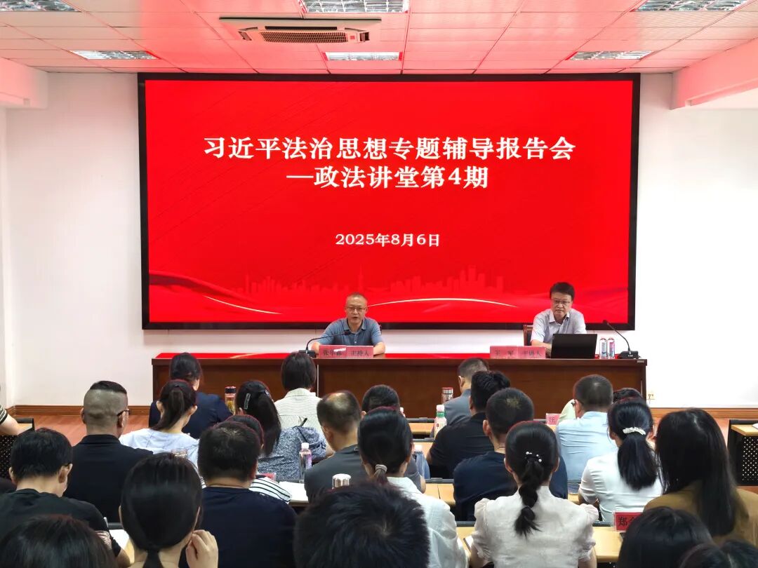 为深入学习贯彻习近平法治思想,切实提升全县政法干警运用法治思维和法治方式履职能力,推动政法工作高质量发展。8月6日,旌德县委政法委举办第4期政法讲堂——习近平法治思想专题辅导报告会。县委政法委、县直各政法单位和各镇相关负责同志以及2025年度全县政法系统政治轮训班暨党员示范培训班全体学员共计70余人参加。