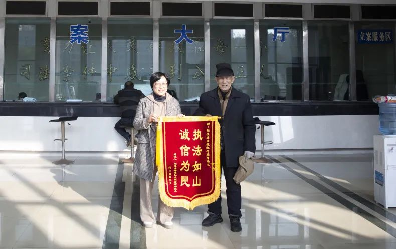 近日,在郎溪县人民法院诉讼服务大厅,年迈的申请执行人杨某紧握着李法官的手连连道谢,并送上一面写有“执法如山 诚信为民”的锦旗,以此表达对法院执行工作的肯定和对执行法官的感谢。