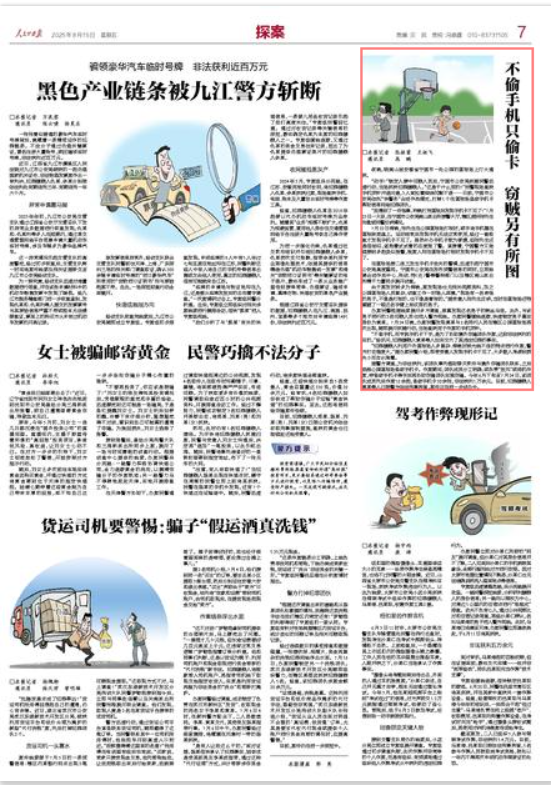 据警方调查,为非法获利,该团伙事先借助聊天软件与境外诈骗团伙联系,之后选择公园篮球场偷窃手机卡。作案期间,团伙成员分工明确,或负责“放风”或伺机作案,待偷窃手机卡得手后再协助诈骗团伙实施诈骗。今年6月下旬至7月24日,该团伙成员先后作案10余起,偷窃手机卡20余张,非法获利1万余元。目前,犯罪嫌疑人黄某等人已被警方依法刑事拘留,案件正在进一步侦办中。