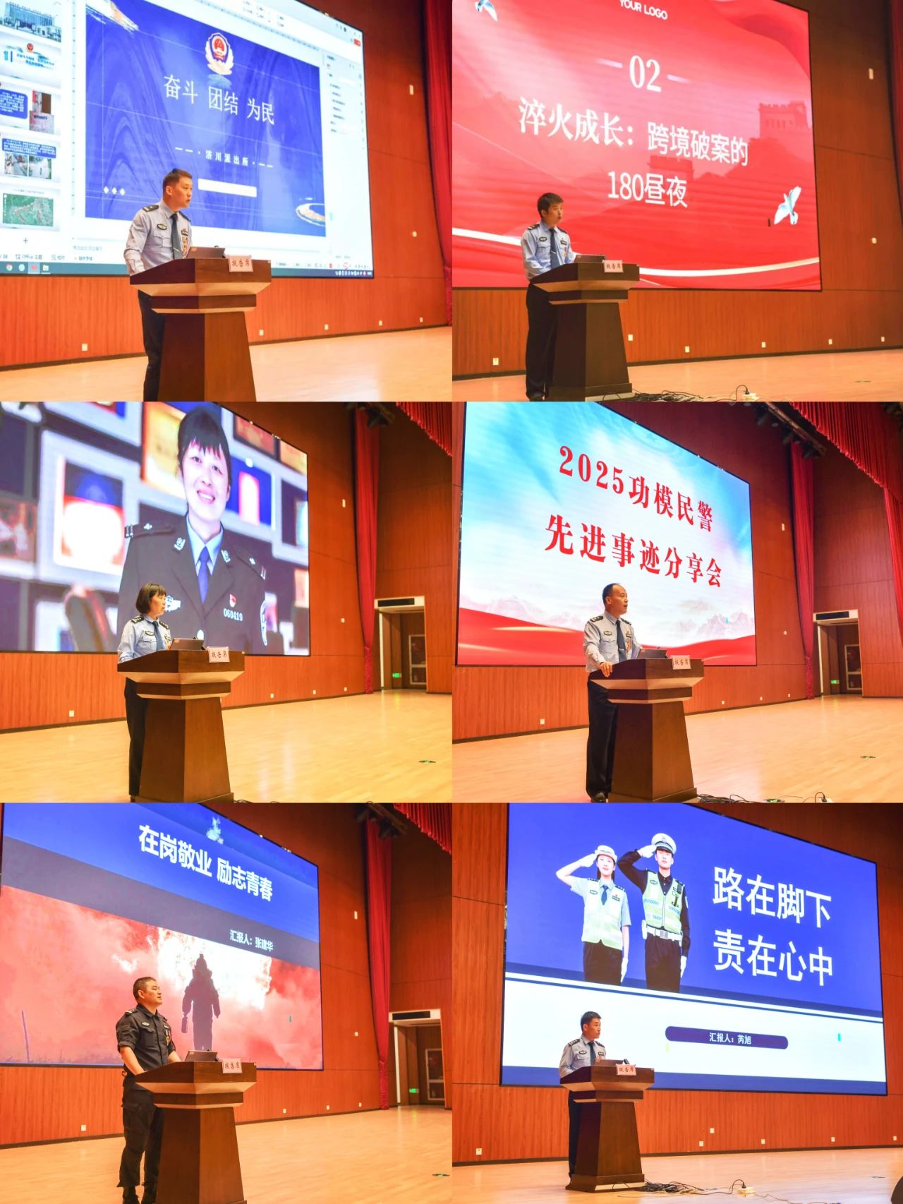 以“警辅同训”为牵引,创新举办功模民警先进事迹分享会,将英模精神融入辅警入职培训课堂。来自特警、刑侦、交警、社区警务、经侦等战线的6名功模民警代表,通过情景讲述、实战案例复盘、互动问答等形式,生动还原了从警生涯中惊心动魄的抓捕瞬间、服务群众的暖心故事、科技赋能的破案攻坚,深刻诠释了“对党忠诚、服务人民、执法公正、纪律严明”的铮铮誓言。