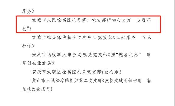 宣城市人民检察院机关第二党支部微视频作品《“初心为灯 步履不歇”》获三等奖!