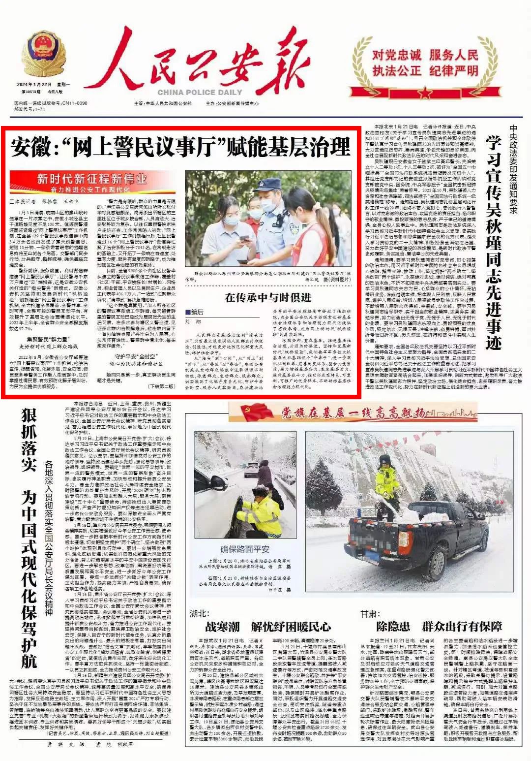 ▲1月22日《人民公安报》
