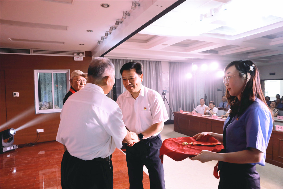 文艺汇演上,朱边疆为两位老党员柯宗金和周思庭佩戴“光荣在党50年”纪念章。“从检30年”干警代表上台合影留念,宣城市人民检察院第二检察部主任、三级高级检察官陈骏上台讲述了自己从检30年来的检察故事和心路历程。随后,市检察院领导班子为2021年度市检察院机关“两优一先”集体和个人代表颁奖。